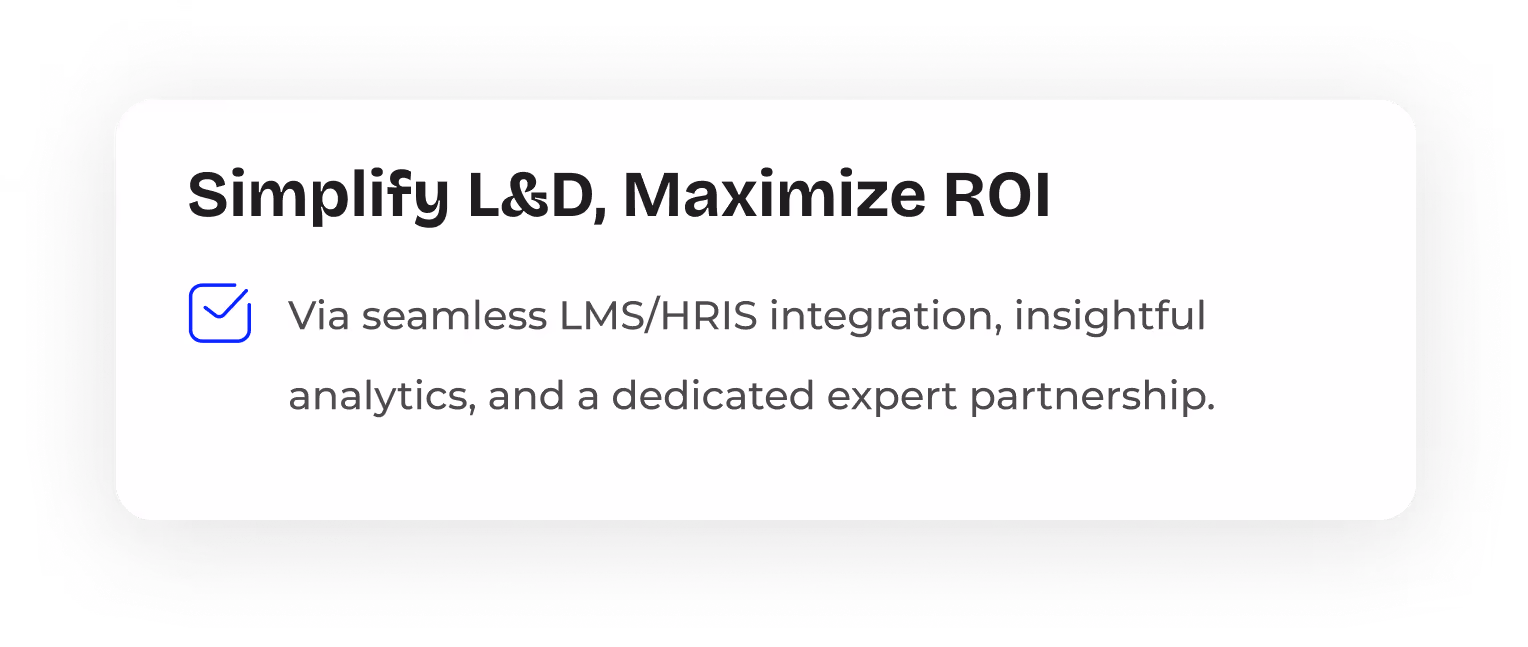 Whether you’re looking to boost engagement, streamline compliance, integrate with complex systems, or receive dedicated strategic support, our solution is designed to solve your biggest learning challenges.