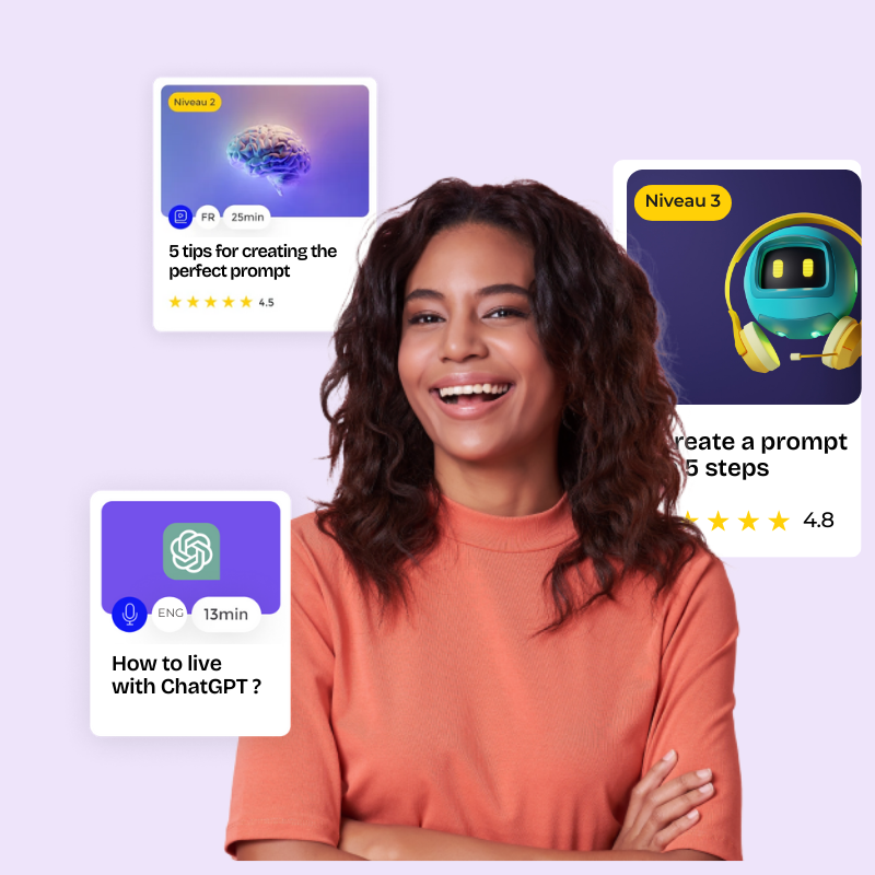 Master artificial intelligence with the best training content on the market. And accelerate learning with our AI Copilot, guiding and supporting your employees throughout their training journey.