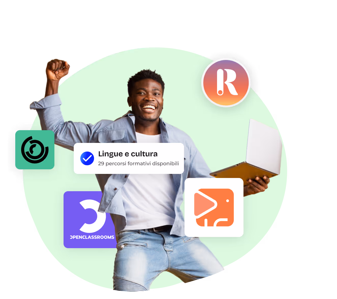 Tematiche, formati, livello di conoscenza...Ogni azienda affronta sfide diverse. Ma, Indipendentemente dai tuoi bisogni formativi, la nostra soluzione si adatta sempre. Non c’è più bisogno di moltiplicare i tuoi fornitori per rispondere alle richieste di formazione dei tuoi collaboratori. Grazie a oltre 500 skill e più di 15 formati in un’unica soluzione, puoi personalizzare l’esperienza formativa delle vostre persone in funzione delle competenze che devono acquisire e rafforzare.